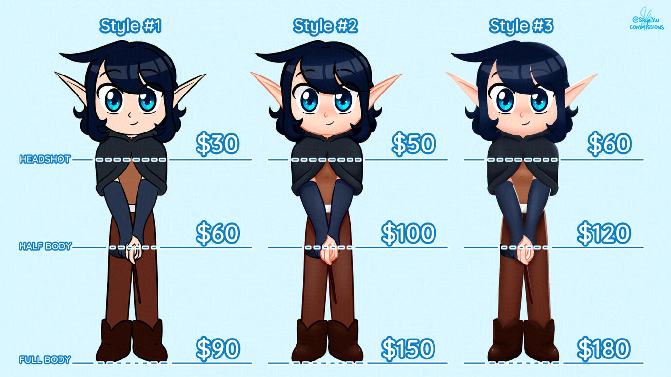 - Prices displayed are starting prices. Thus, they may increase depending on the complexity of the commission.